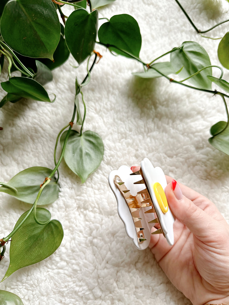Sunny Side Up Egg Claw Clip is backordered and will ship as soon as it is back in stock.