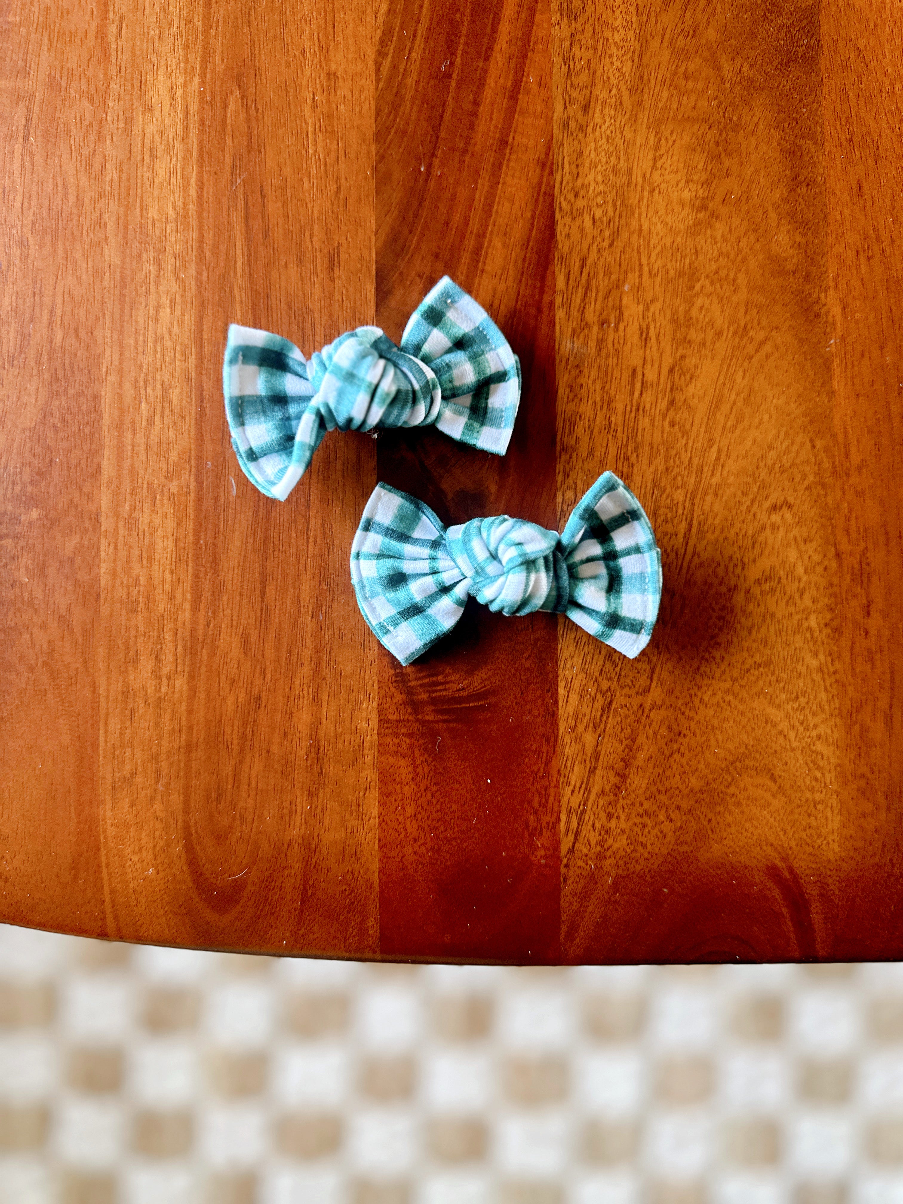 Set of two 3” sewn, hand tied bows on 2” alligator clips