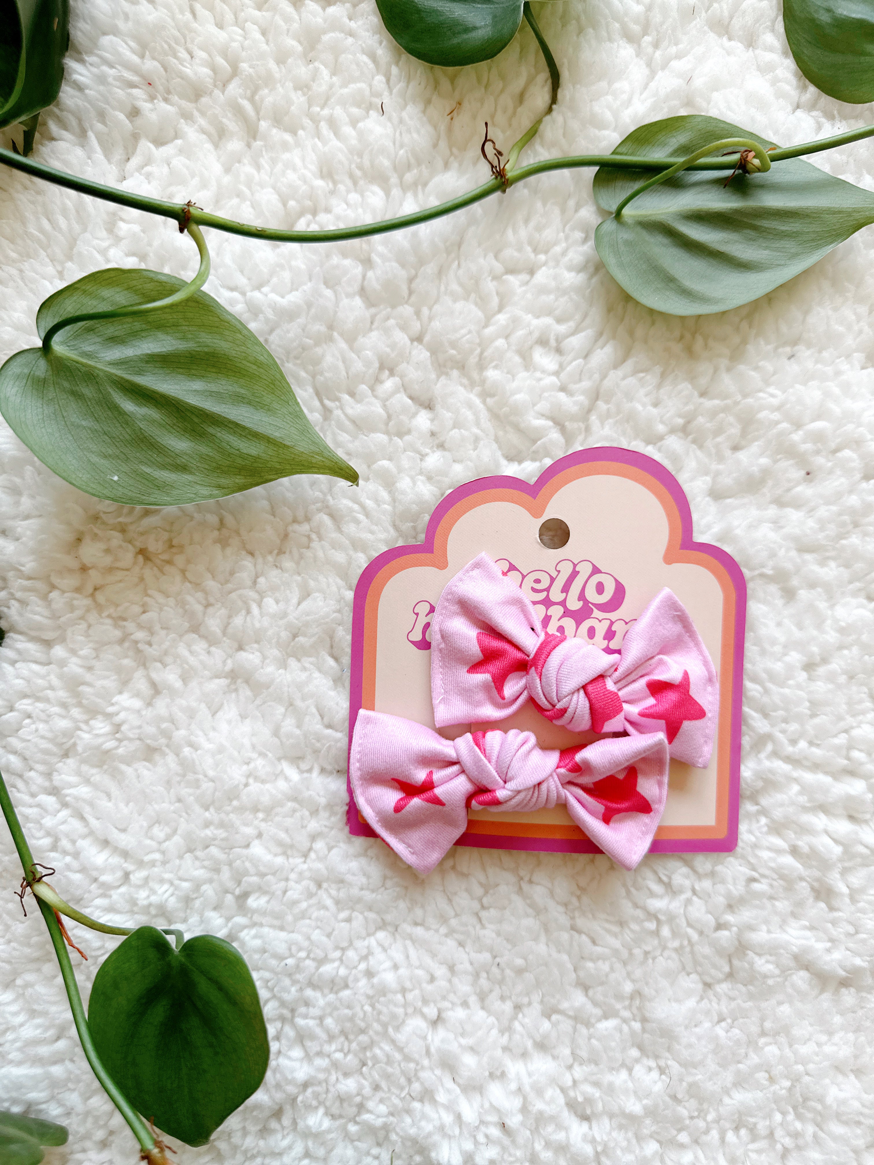 Pigtail Clip Set - Pink Stars