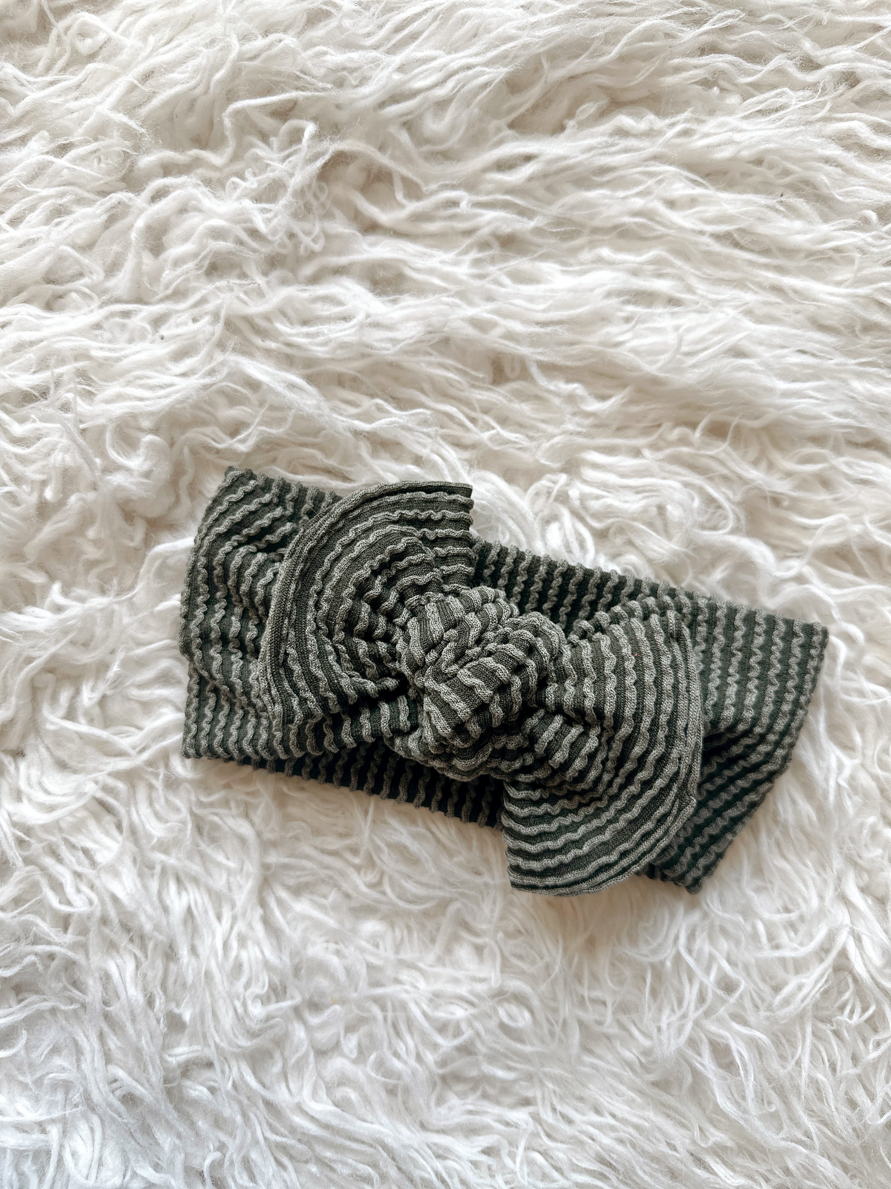 Textured Mini Tieband - Wavy Ribbed Olive